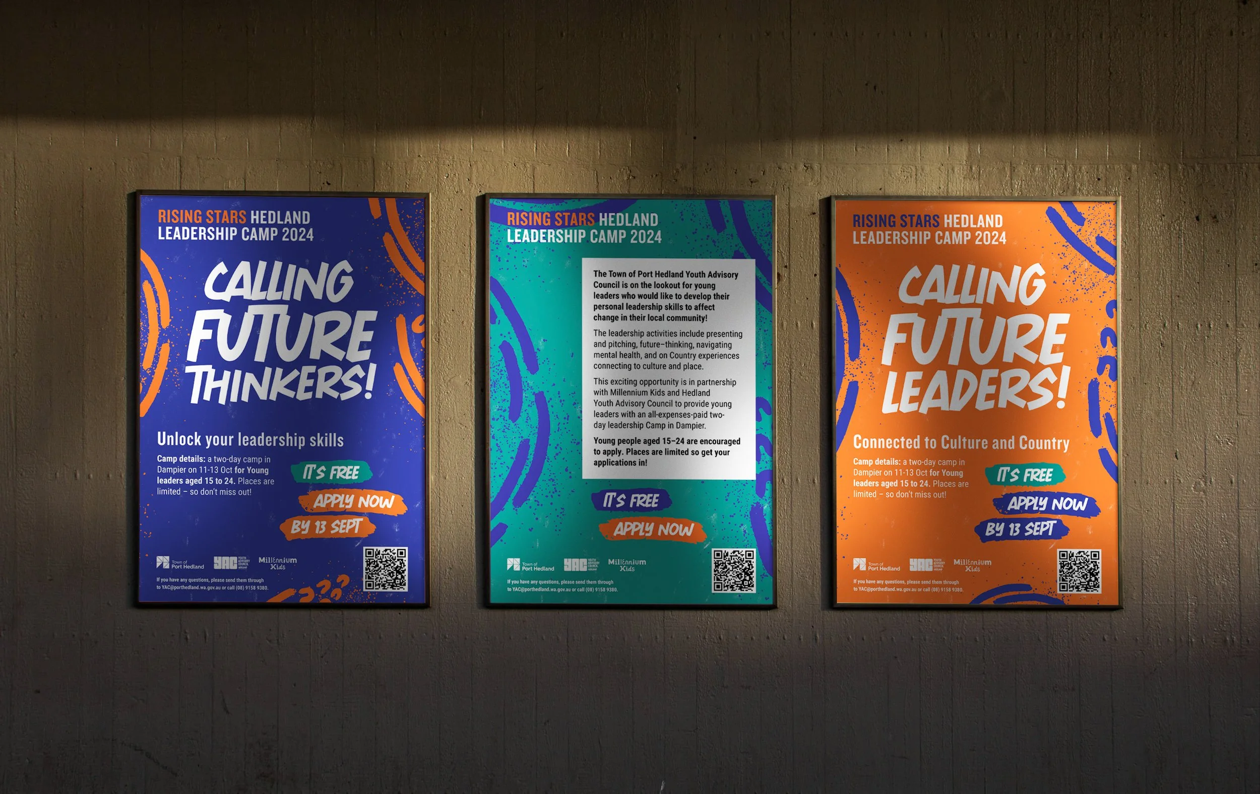 I designed the posters and social media announcement for their two-day leadership camp in Dampier, an open call for future leaders and big thinkers from the Port Hedland area to step forward and get involved.